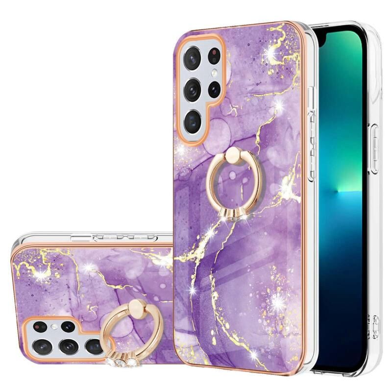 Θήκη κινητού τηλεφώνου Samsung Galaxy S23 Ultra 5G με Ηλεκτρολυτική επικάλυψη, σχέδιο Μάρμαρου IMD, από TPU με Δαχτυλίδι Στήριξης (Μωβ 001)