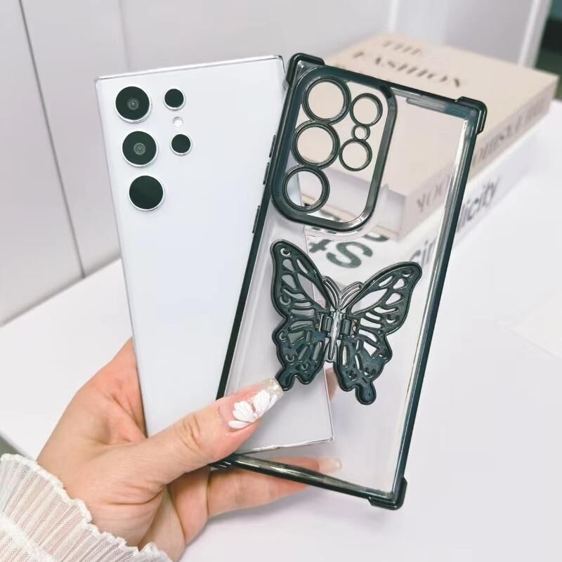Θήκη κινητού τηλεφώνου TPU με ηλεκτρολυτική επικάλυψη και σχέδιο 3D πεταλούδας για Samsung Galaxy S23 Ultra 5G (Μαύρο)