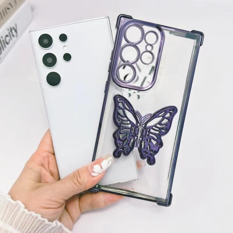 Θήκη κινητού τηλεφώνου TPU με ηλεκτρολυτική επικάλυψη και σχέδιο 3D πεταλούδας για Samsung Galaxy S23 Ultra 5G (Μαύρο)