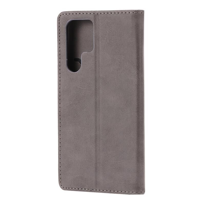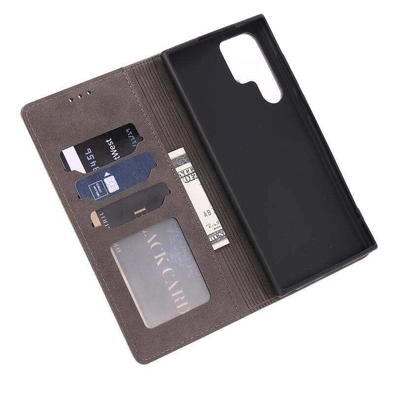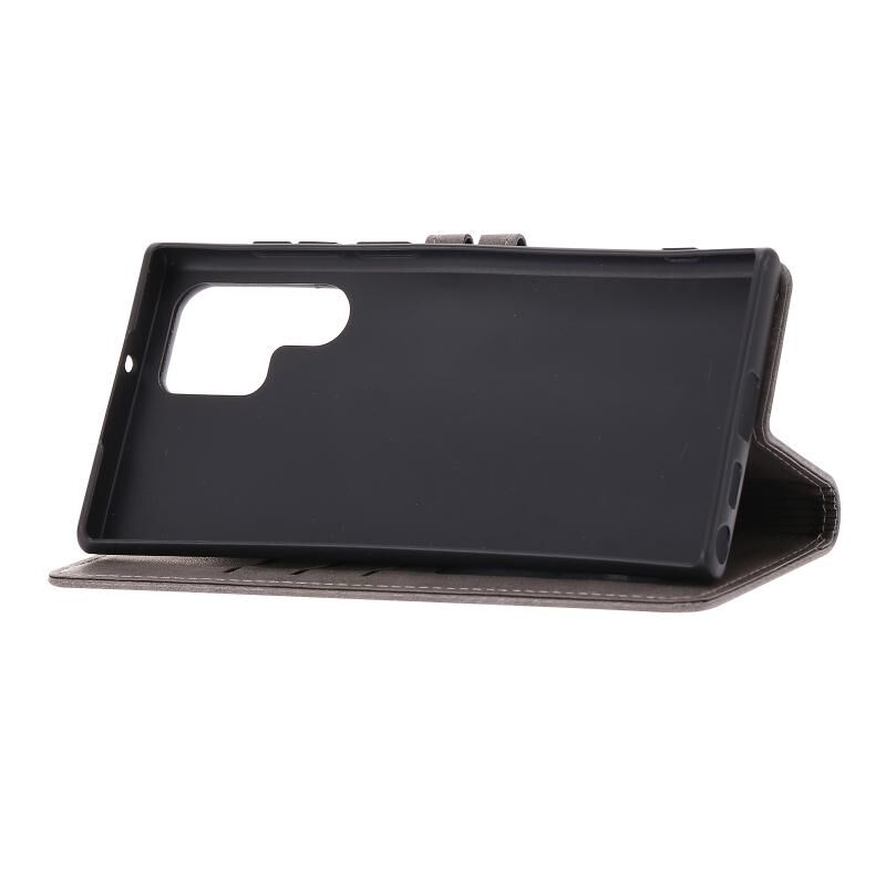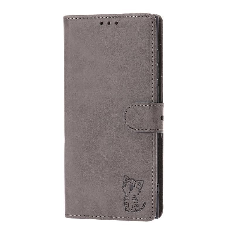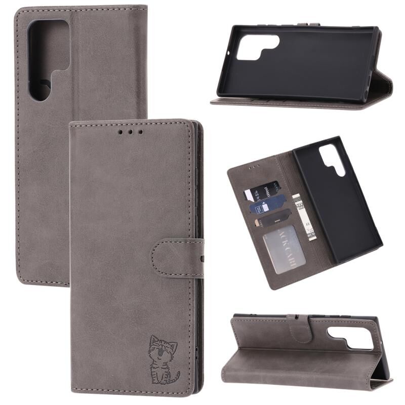 Για Samsung Galaxy S23 Ultra 5G ανάγλυφο Happy Cat μοτίβο Flip υπόθεση τηλεφώνου δέρμα (γκρι)