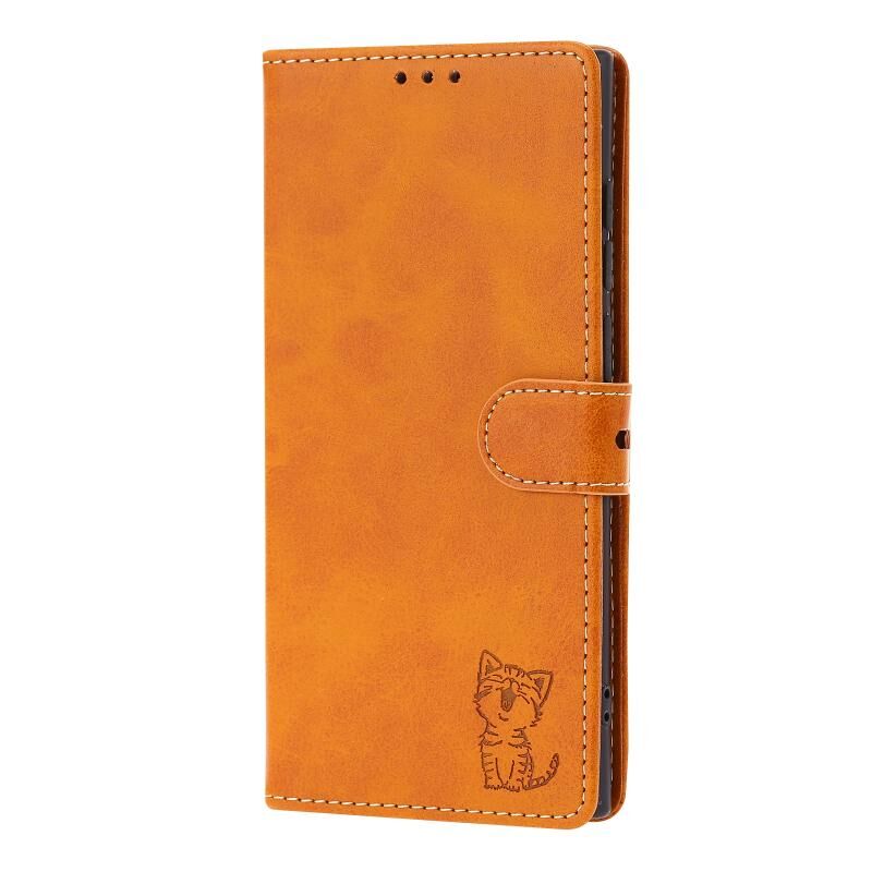 Για Samsung Galaxy S23 Ultra 5G ανάγλυφο Happy Cat μοτίβο Flip υπόθεση τηλεφώνου δέρμα (κίτρινο)