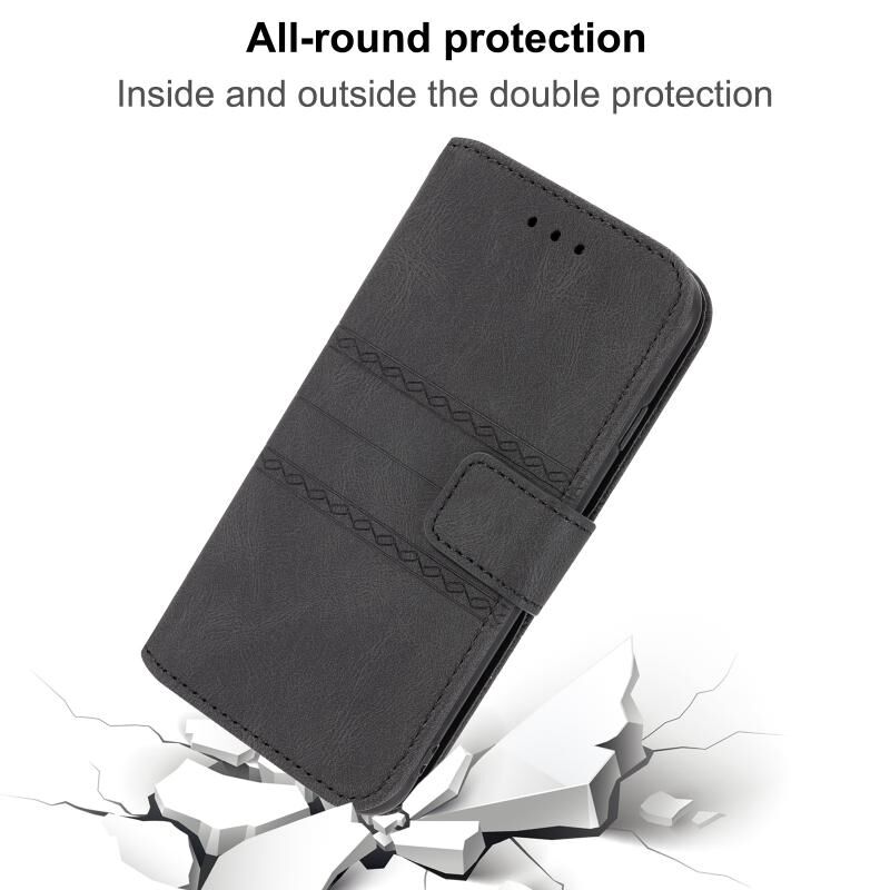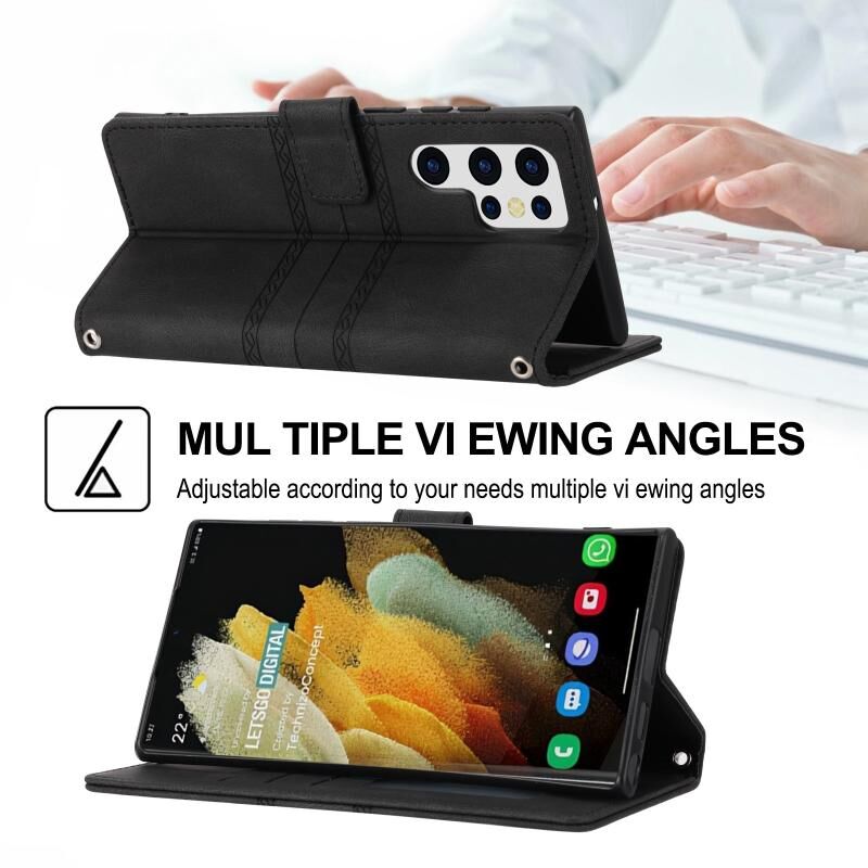 Για Samsung Galaxy S23 Ultra 5G ανάγλυφο ρίγες δέρμα δέρμα αίσθηση τηλέφωνο υπόθεση (μαύρο)