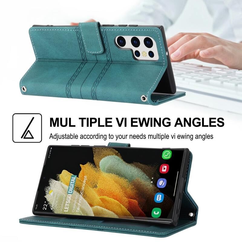 Για Samsung Galaxy S23 Ultra 5G ανάγλυφο ρίγες δέρμα δέρμα αίσθηση υπόθεση τηλεφώνου (σκούρο πράσινο)