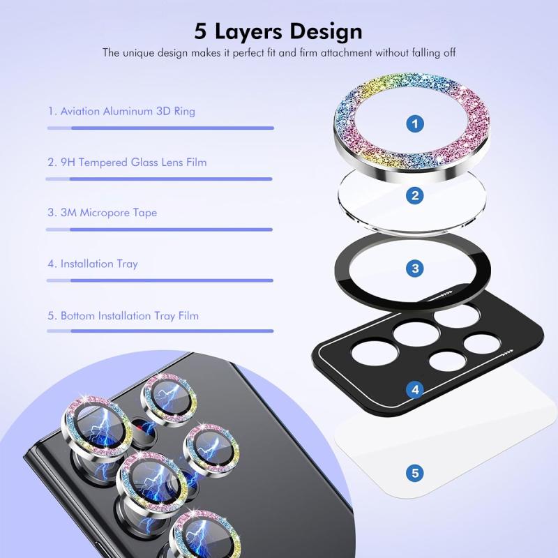 4. Upgraded Glue for Strong Adhesion: This time, we used an upgraded version of optical glue, which has stronger adhesion. Once you install our phone camera lens protector, it will adhere firmly to your phone's lens, significantly reducing the problem of the protector easily falling off.