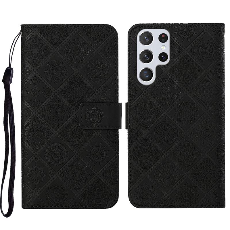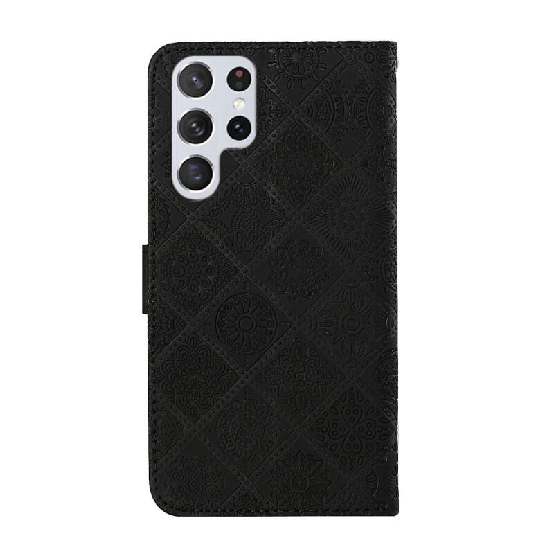 Θήκη τηλεφώνου δερμάτινη με ανάγλυφο σχέδιο εθνοτικού στυλ για Samsung Galaxy S23 Ultra 5G (Μαύρο)