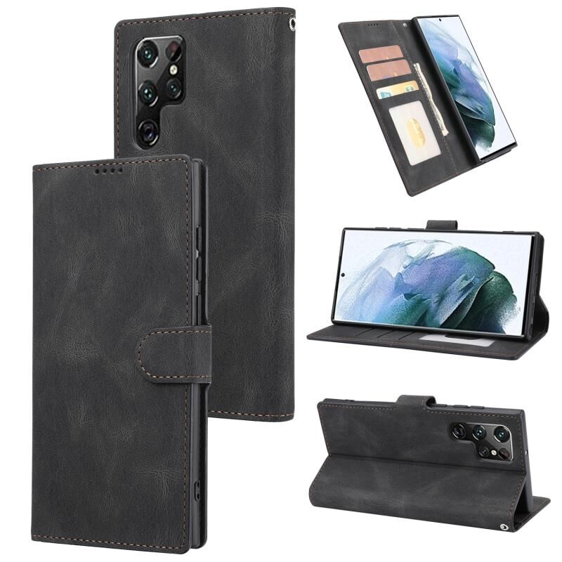 Για το Samsung Galaxy S23 Ultra 5G Fantasy Classic Skin-feel Calfskin Υφή PU υπόθεση τηλεφώνου (Μαύρο)