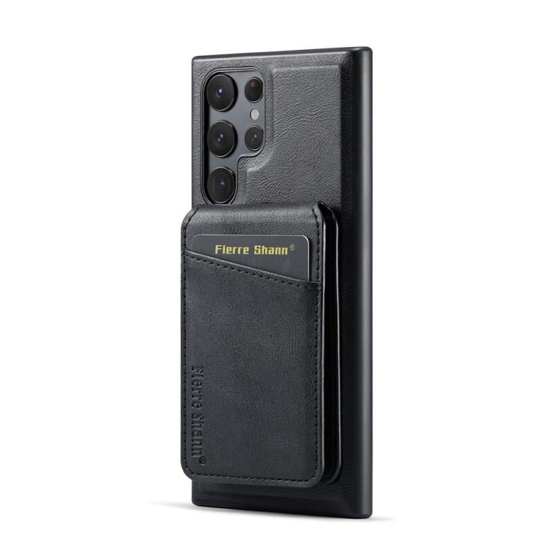 For Samsung Galaxy S23 Ultra 5G Fierre Shann Cowhide Vertical Flip Magnetic Card Holder Phone Case(Black) (FIERRE SHANN)