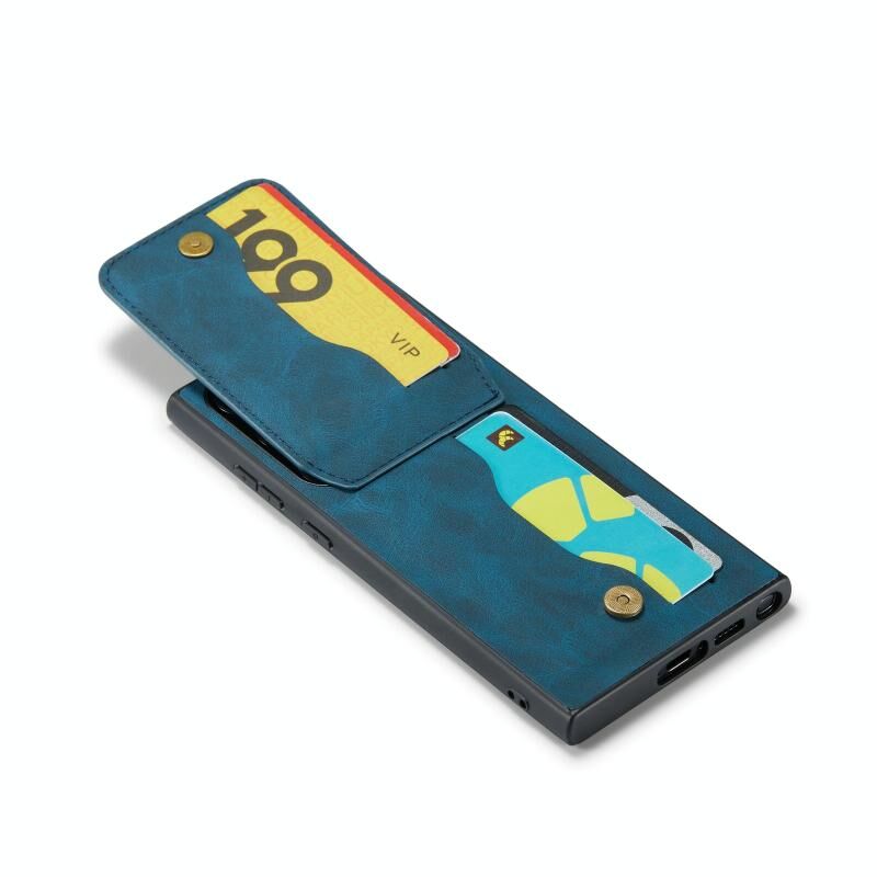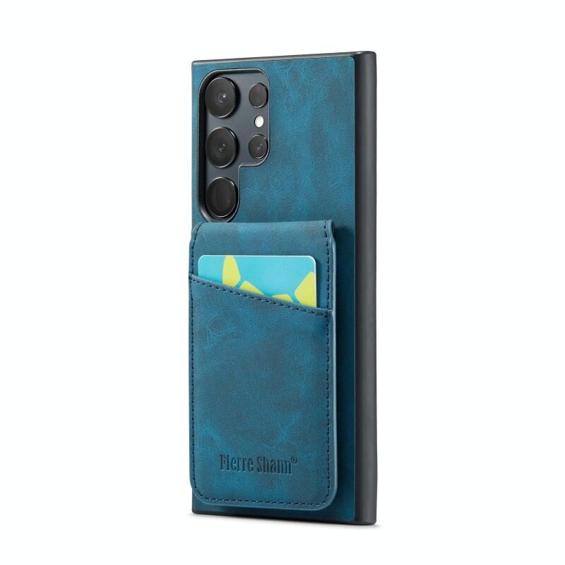 Για Samsung Galaxy S23 Ultra 5G Fierre Shann Crazy Horse Κάτοχος κάρτας κάτοχος πίσω κάλυμμα PU υπόθεση τηλεφώνου (μπλε) (FIERRE SHANN)