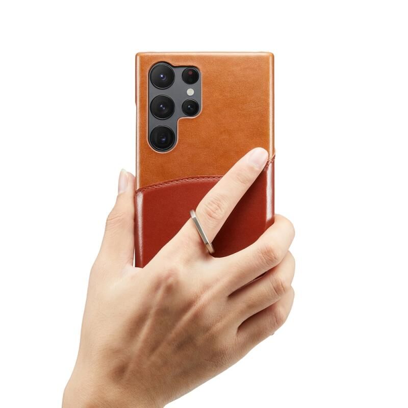 Θήκη κινητού τηλεφώνου από γνήσιο δέρμα με υφή λαδιού και κεριού για Samsung Galaxy S23 Ultra 5G (Καφέ) (FIERRE SHANN)