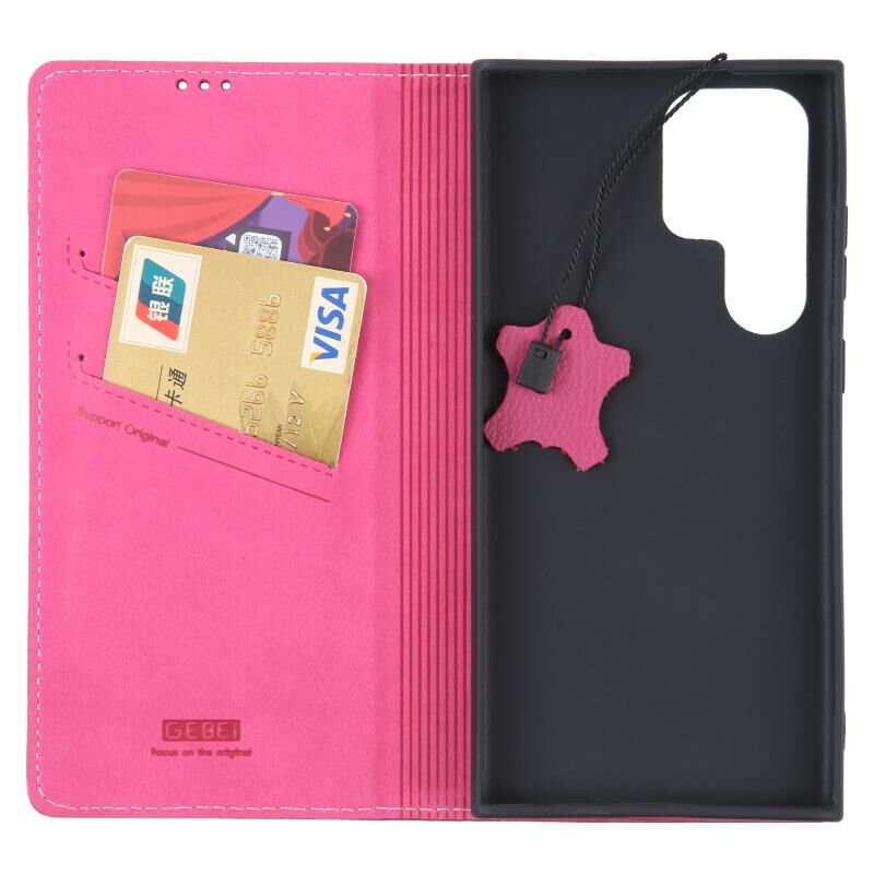 Θήκη τηλεφώνου δέρματος οριζόντιας αναδίπλωσης για Samsung Galaxy S23 Ultra 5G GEBEI (Κόκκινο Ρόδι) (GEBEI)