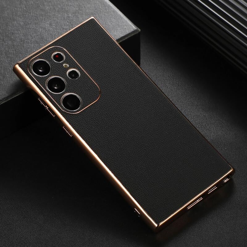 For Samsung Galaxy S23 Ultra 5G Genuine Leather Luolai Series Nano Plating Phone Case(Black)