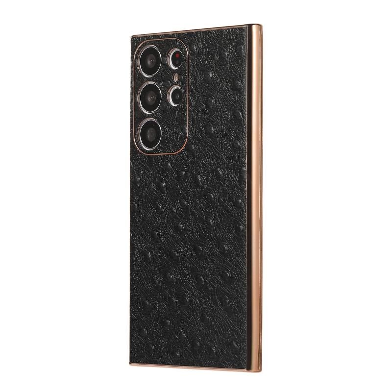 For Samsung Galaxy S23 Ultra 5G Genuine Leather Ostrich Texture Nano Electroplating Phone Case(Black)