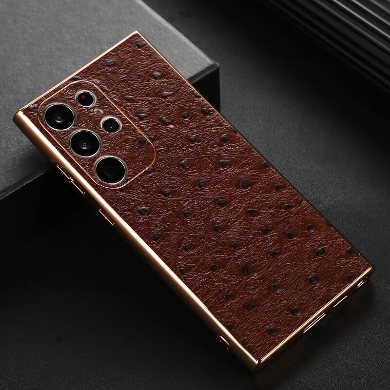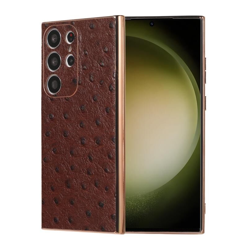 For Samsung Galaxy S23 Ultra 5G Genuine Leather Ostrich Texture Nano Electroplating Phone Case(Coffee)