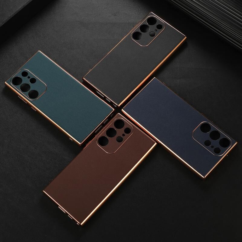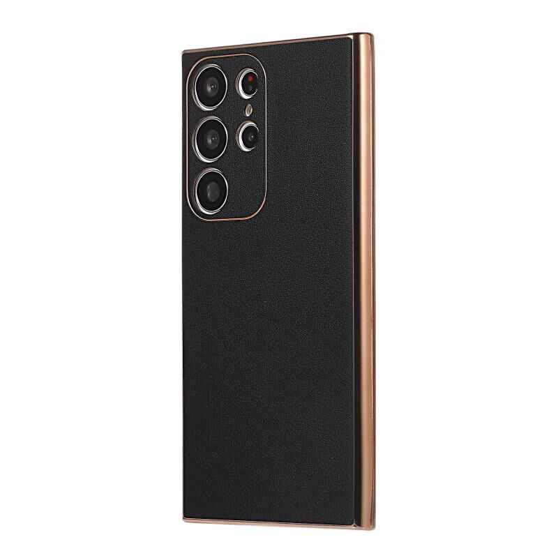 For Samsung Galaxy S23 Ultra 5G Genuine Leather Xiaoya Series Nano Plating Phone Case(Black)
