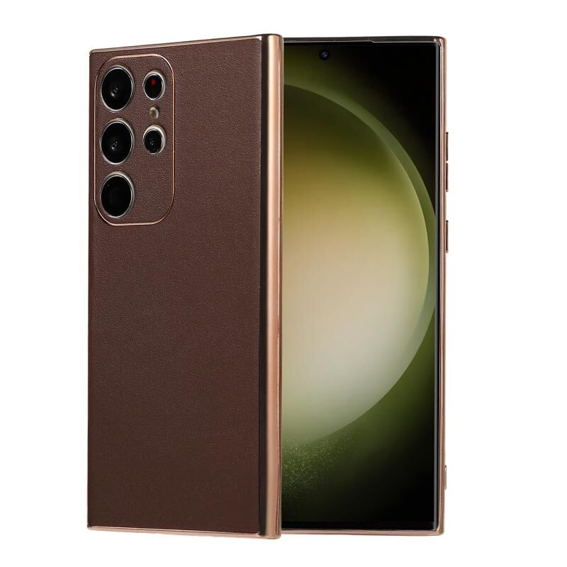 For Samsung Galaxy S23 Ultra 5G Genuine Leather Xiaoya Series Nano Plating Phone Case(Coffee)