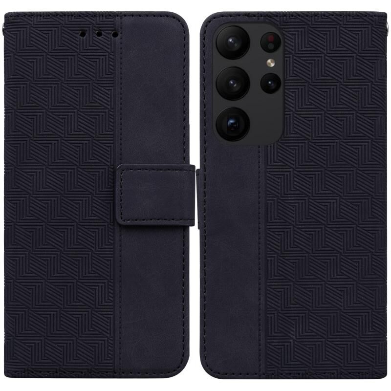 Για Samsung Galaxy S23 Ultra 5G γεωμετρική ανάγλυφη Flip δερμάτινη θήκη τηλεφώνου (μαύρο)
