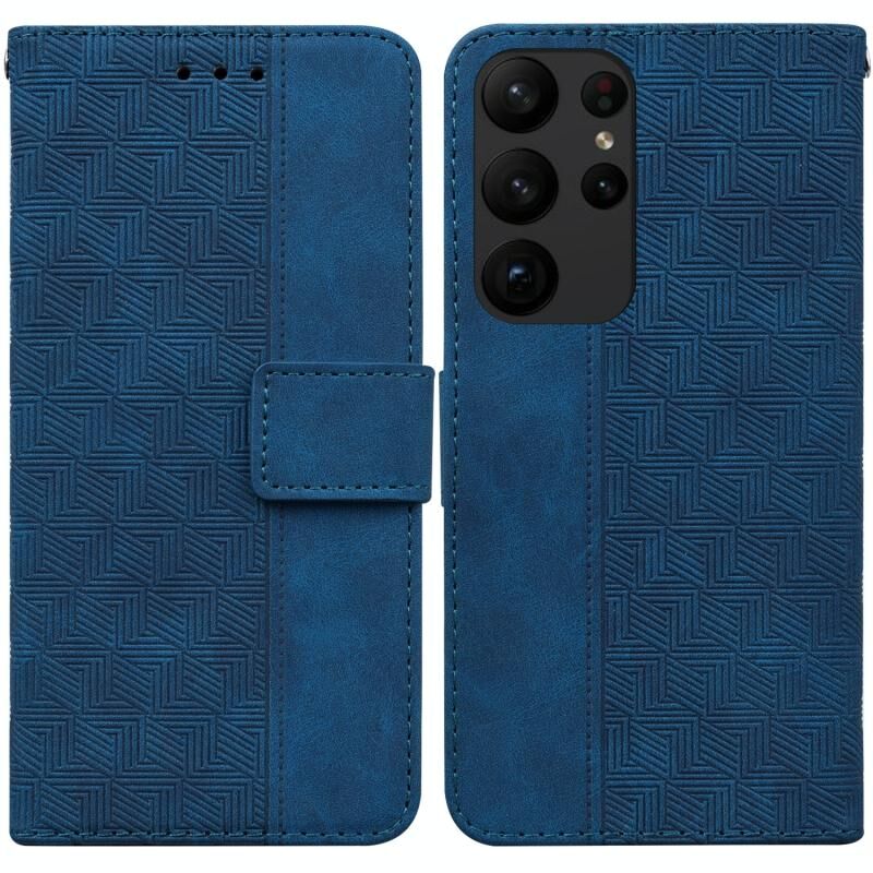 Για Samsung Galaxy S23 Ultra 5G γεωμετρική ανάγλυφη Flip δερμάτινη θήκη τηλεφώνου (μπλε)