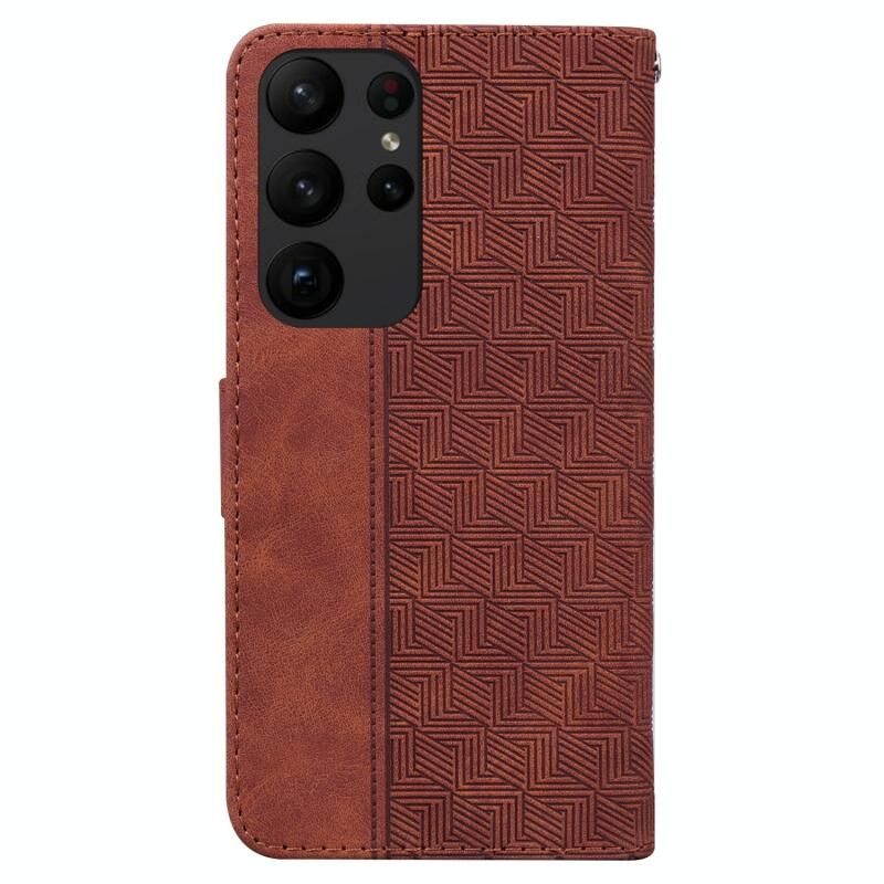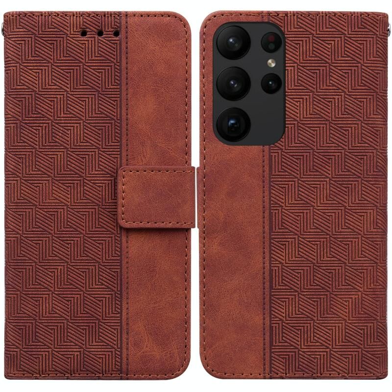 Για Samsung Galaxy S23 Ultra 5G γεωμετρική ανάγλυφη Flip δερμάτινη θήκη τηλεφώνου (καφέ)