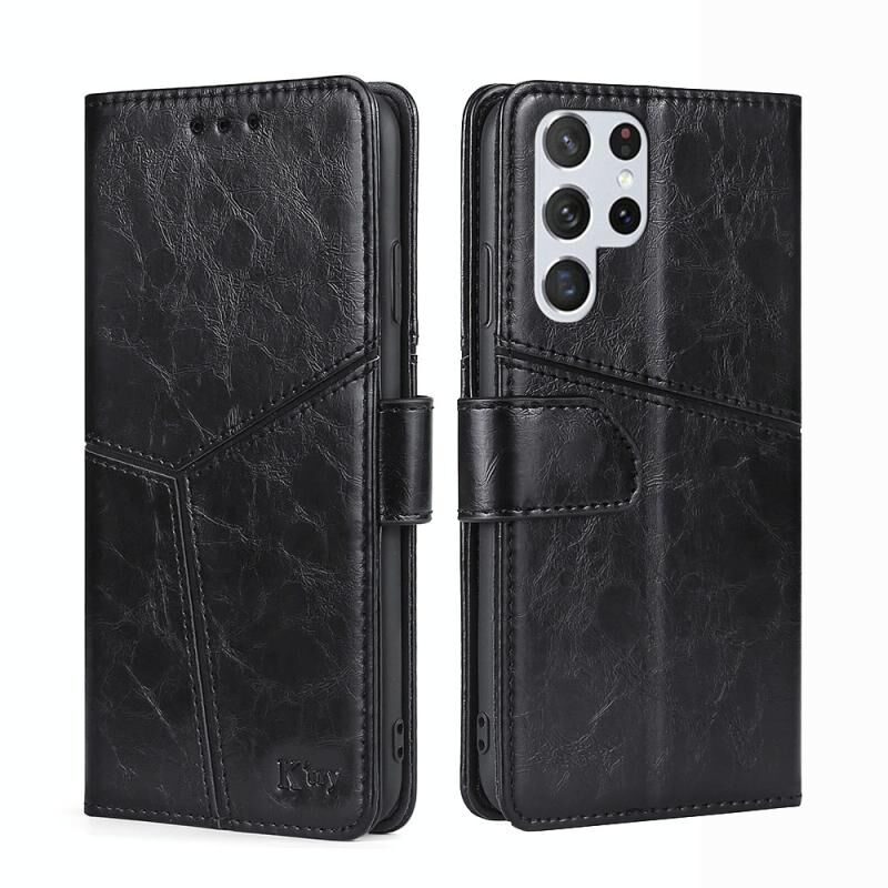 Για Samsung Galaxy S23 Ultra 5G γεωμετρική ραφή οριζόντια Flip δέρμα τηλέφωνο υπόθεση (μαύρο)