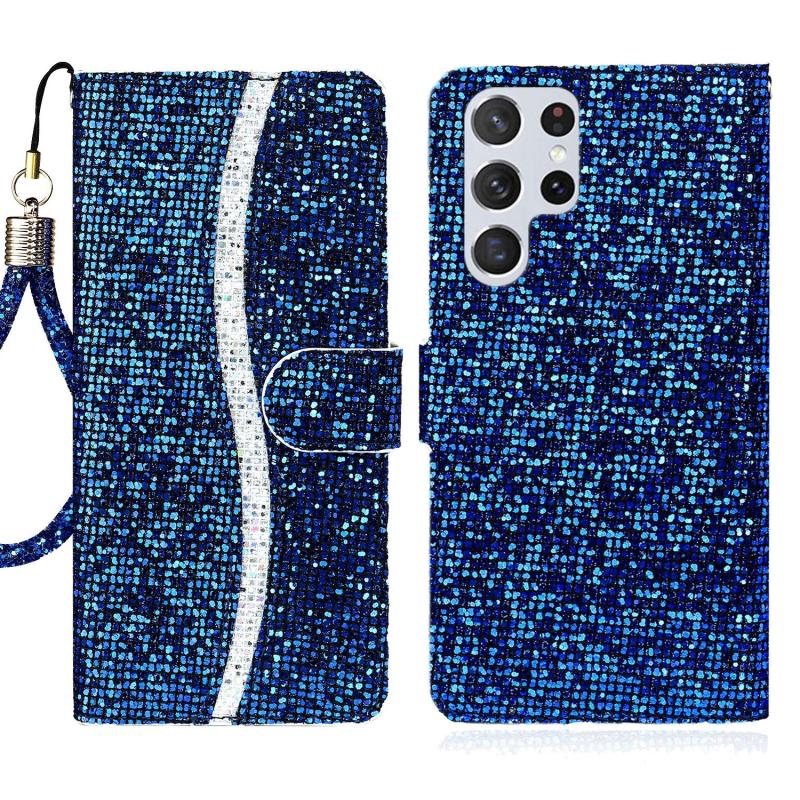 Θήκη τηλεφώνου Samsung Galaxy S23 Ultra 5G από δέρμα με γκλίτερ σε σκόνη (Μπλε)