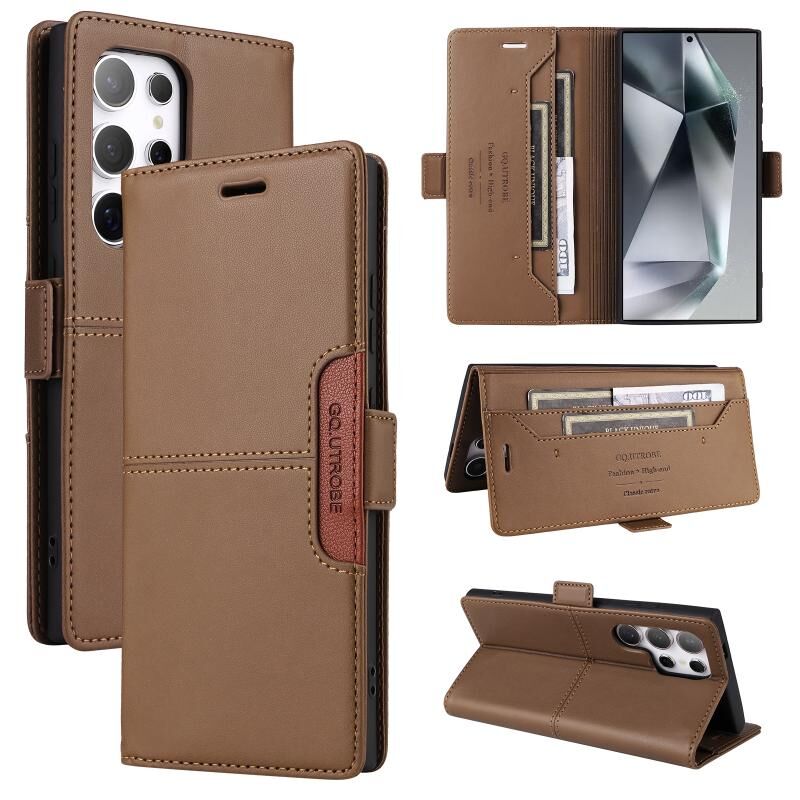 For Samsung Galaxy S23 Ultra 5G GQUTROBE G01 RFID Anti-theft Leather Phone Case(Brown) (GQUTROBE)