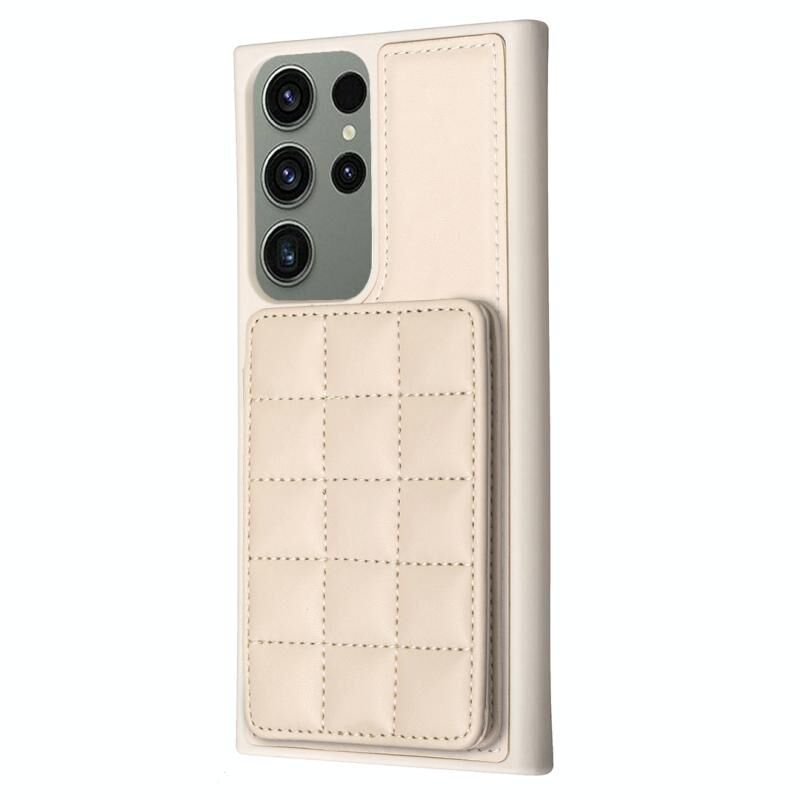 Για Samsung Galaxy S23 Ultra 5G Grid κάρτα Slot κάτοχος υπόθεση τηλέφωνο (Μπεζ)