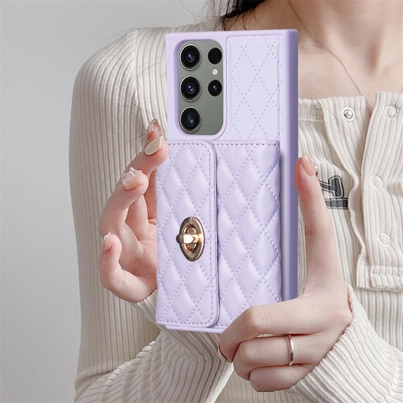 Για Samsung Galaxy S23 Ultra 5G Οριζόντια μεταλλική πόρπη πορτοφόλι ρομβοειδή δέρμα τηλέφωνο υπόθεση (μωβ)