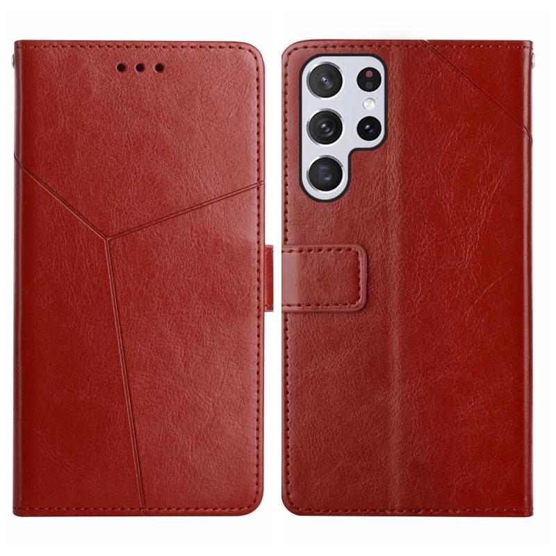 Θήκη τηλεφώνου Samsung Galaxy S23 Ultra 5G HT01 δερμάτινη, τύπου flip με μοτίβο Y (Καφέ)