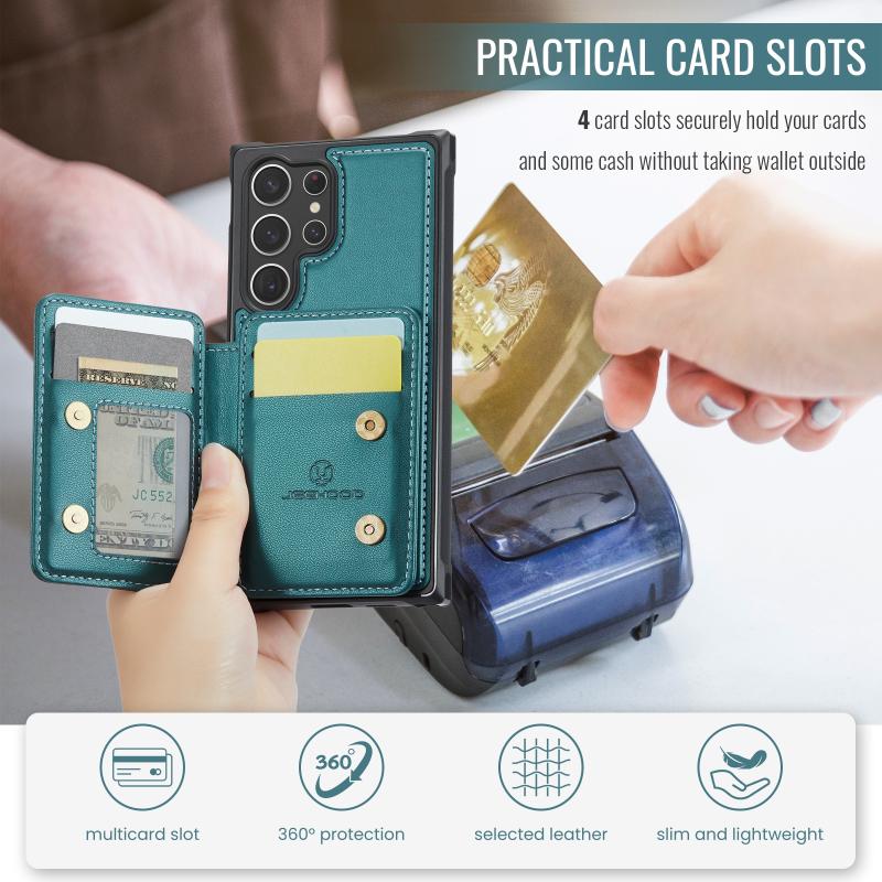 For Samsung Galaxy S23 Ultra 5G JEEHOOD J05 Business Magnetic Style RFID Leather Phone Case(Blue Green) (JEEHOOD)