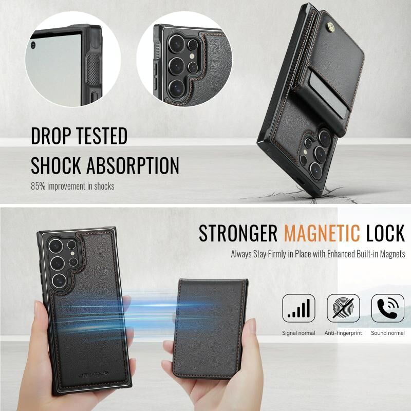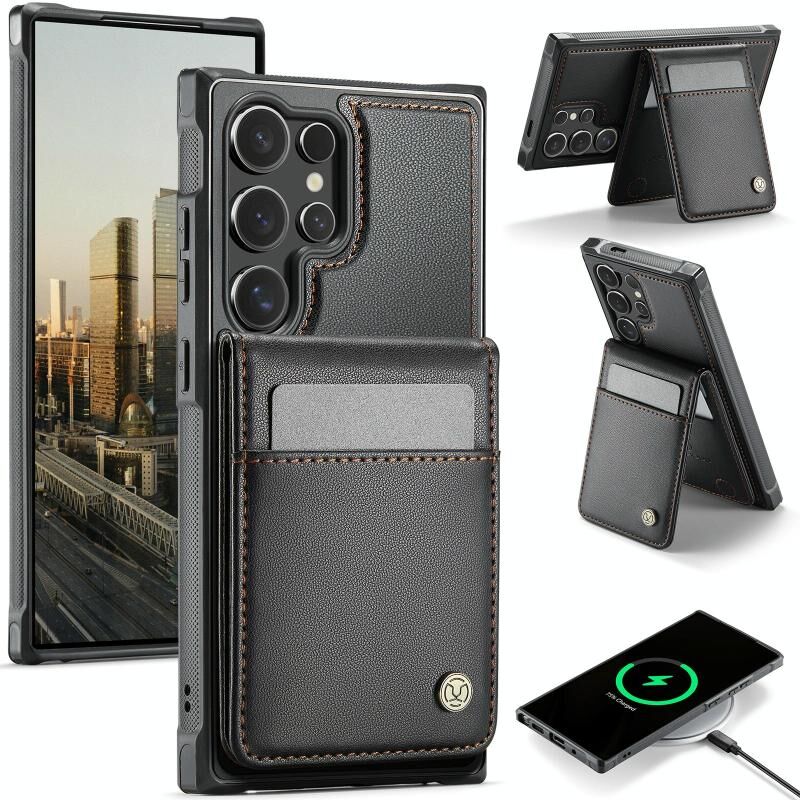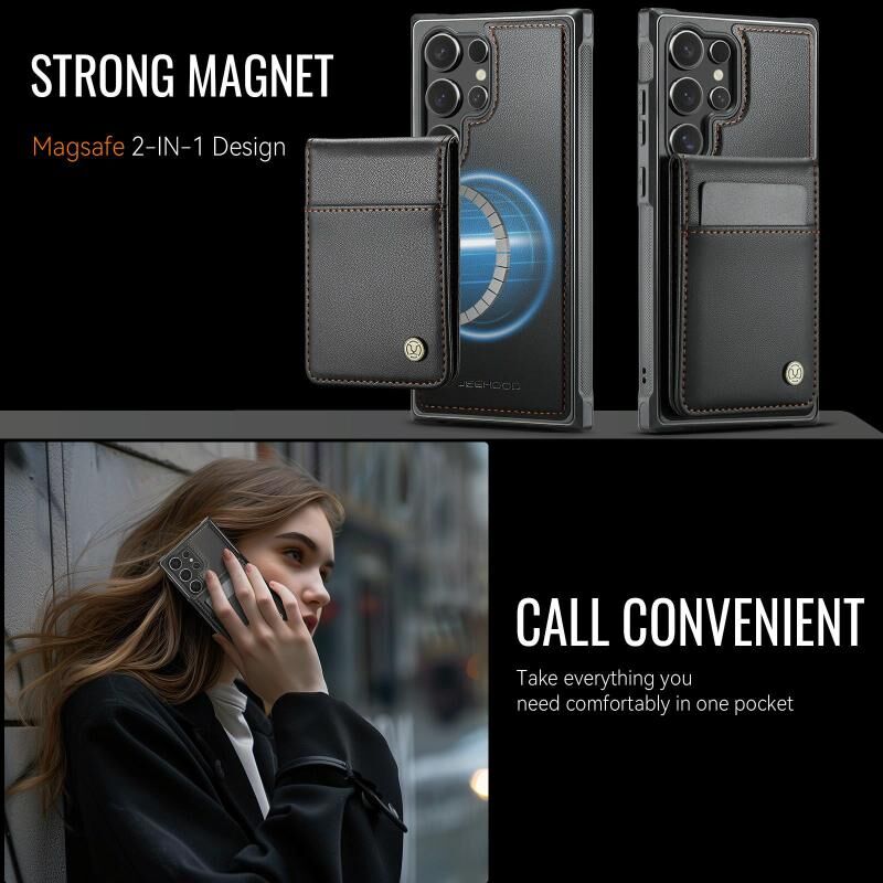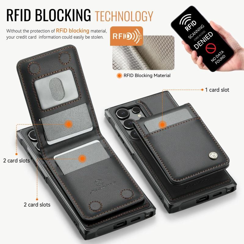 Για Samsung Galaxy S23 Ultra 5G JEEHOOD J06 Θήκη κινητού τηλεφώνου από PU σε βρετανικό στυλ με κάρτες RFID MagSafe (Καφέ) (JEEHOOD)