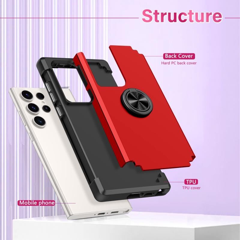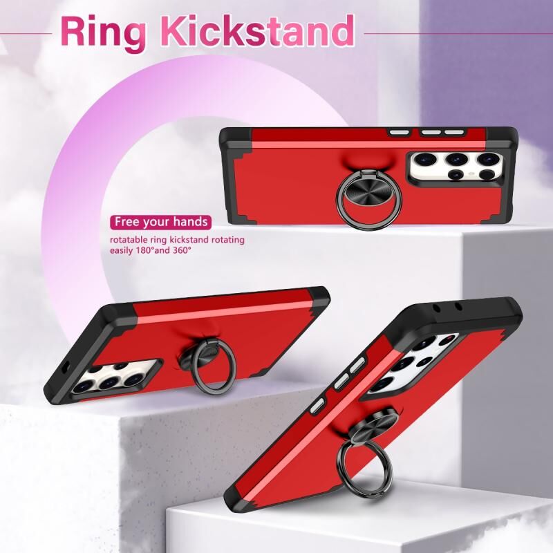 Θήκη κινητού τηλεφώνου με περιστρεφόμενη βάση δακτυλιδιού και μαγνητική υποστήριξη για Samsung Galaxy S23 Ultra 5G L2 (Μαύρο)