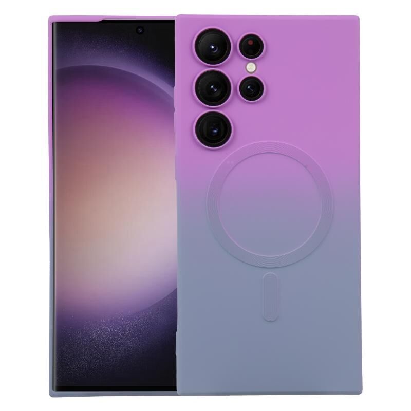 Θήκη τηλεφώνου για Samsung Galaxy S23 Ultra 5G, Υγρή σιλικόνη TPU με διαβάθμιση χρώματος, συμβατή με MagSafe (Ροζ-Κόκκινο)