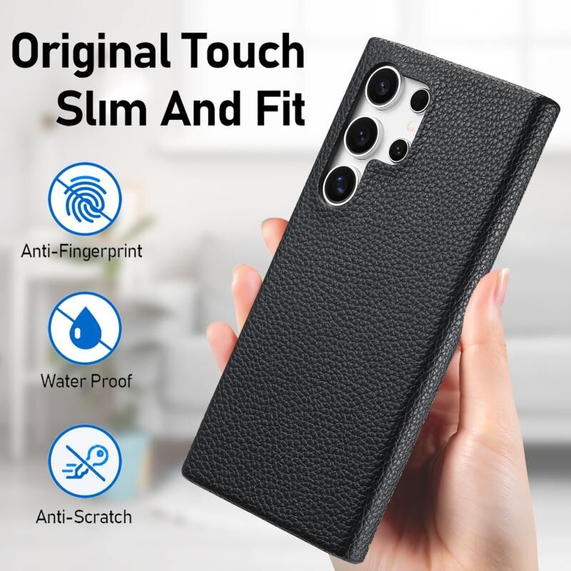 Για Samsung Galaxy S23 Ultra 5G Litchi Oil Edge δέρμα πίσω υπόθεση τηλεφώνου (μαύρο)