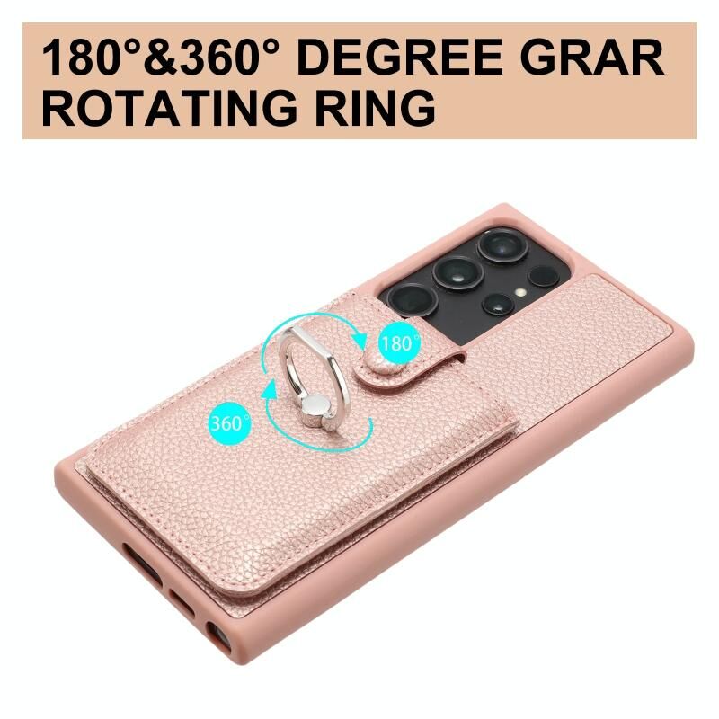 Για Samsung Galaxy S23 Ultra 5G Litchi Υφή Σχεδίαση κάρτα τσάντα τσάντα δαχτυλίδι κάτοχος υπόθεση τηλεφώνου (Rose Gold)