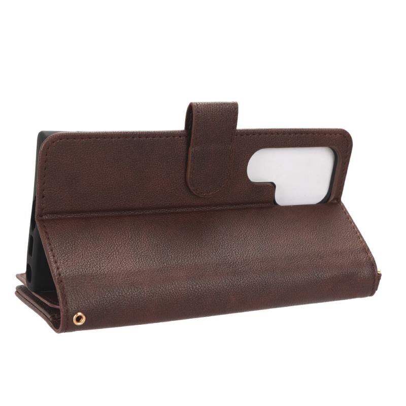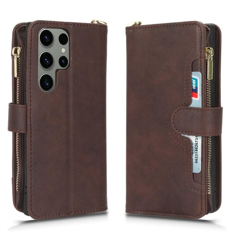Για Samsung Galaxy S23 Ultra 5G Litchi Υφή φερμουάρ δερμάτινη θήκη τηλεφώνου (καφέ)