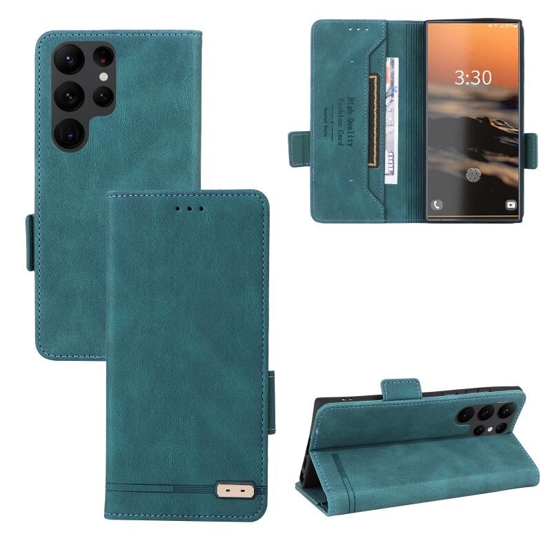 Για Samsung Galaxy S23 Ultra 5G μαγνητικό κούμπωμα δερμάτινη θήκη τηλεφώνου (πράσινο)