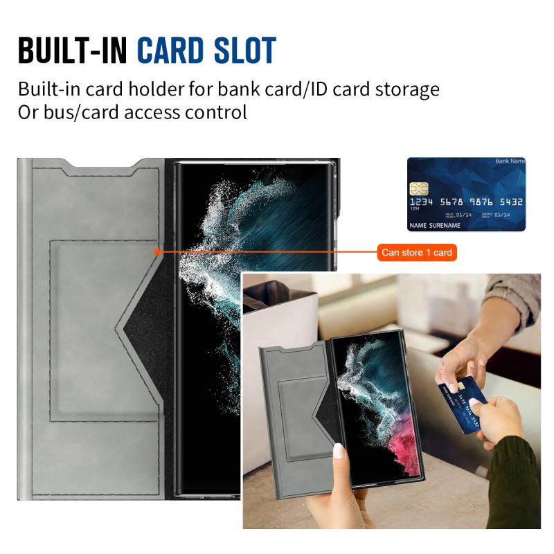 Θήκη δερμάτινη με μαγνήτη και βάση για Samsung Galaxy S23 Ultra 5G (Γκρι)