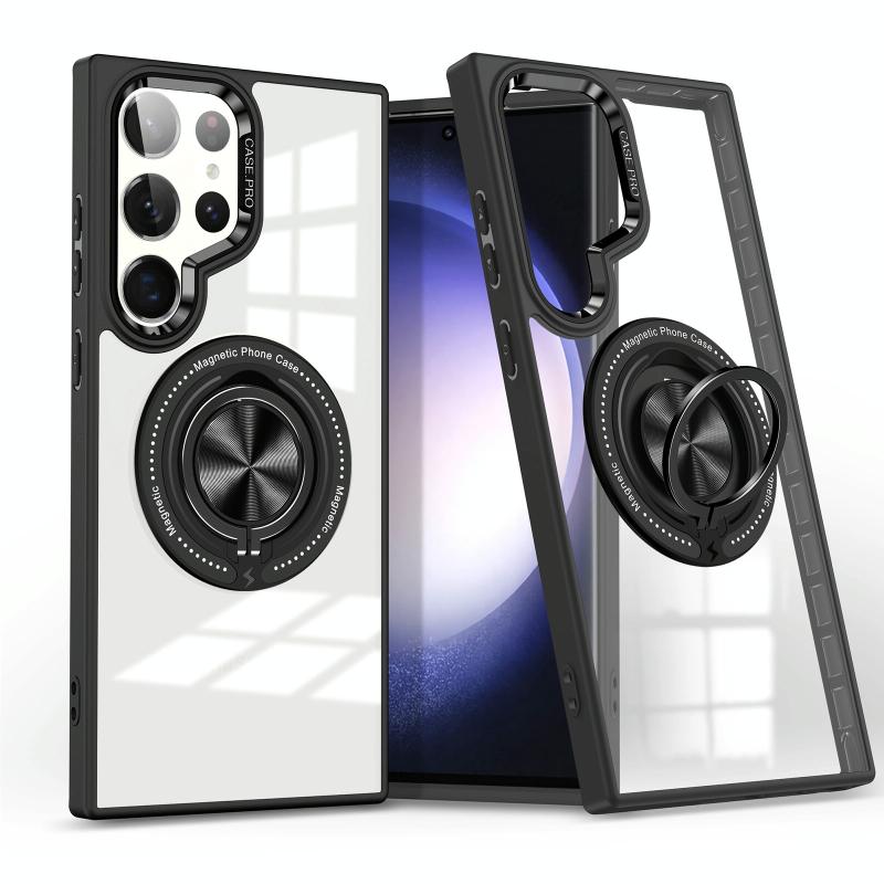 For Samsung Galaxy S23 Ultra 5G Magnetic Rotating Ring Holder Phone Case(Black)