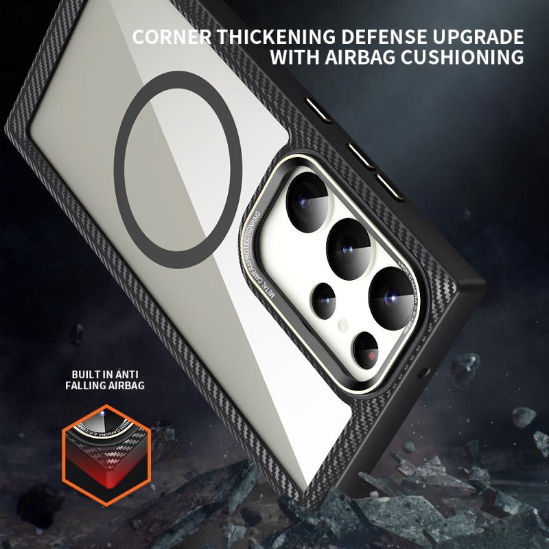 For Samsung Galaxy S23 Ultra 5G MagSafe Carbon Fiber Transparent Back Panel Phone Case(Black)