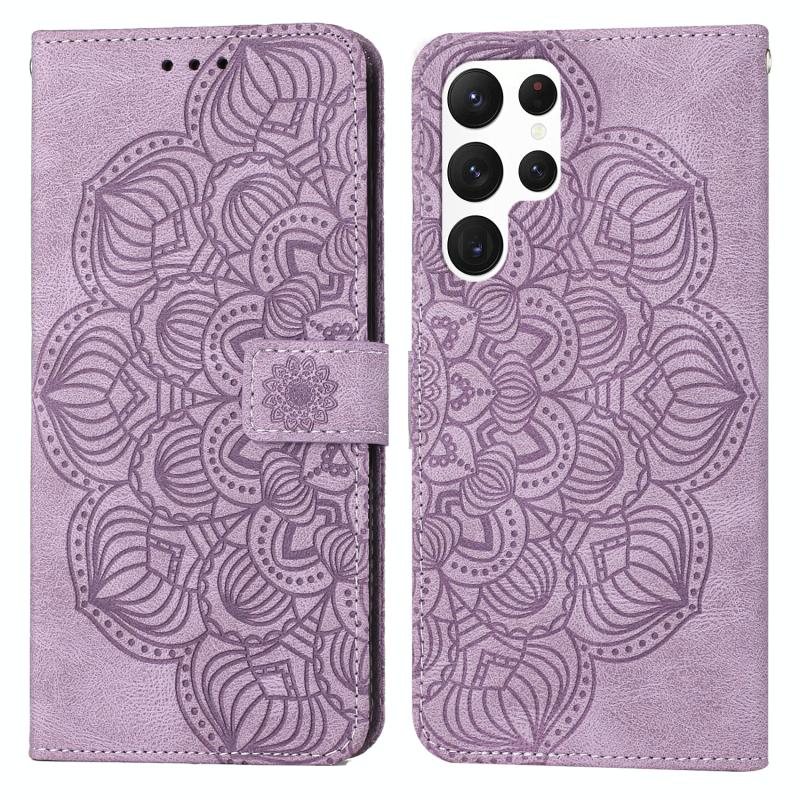 Θήκη τηλεφώνου Samsung Galaxy S23 Ultra 5G, δερμάτινη, με ανάγλυφο σχέδιο Mandala και πτυσσόμενη (Μωβ)