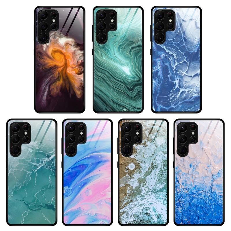 Θήκη τηλεφώνου από γυαλί με σχέδιο μάρμαρου για Samsung Galaxy S23 Ultra 5G (Μπλε Ωκεανός)