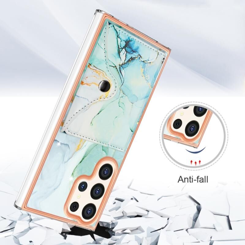 Θήκη κινητού τηλεφώνου με θήκη κάρτας IMD με σχέδιο μαρμάρου για Samsung Galaxy S23 Ultra 5G (Λευκό μάρμαρο Galaxy)