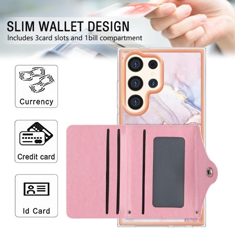 Θήκη κινητού τηλεφώνου με θήκη κάρτας IMD με σχέδιο μαρμάρου για Samsung Galaxy S23 Ultra 5G (Λευκό μάρμαρο Galaxy)