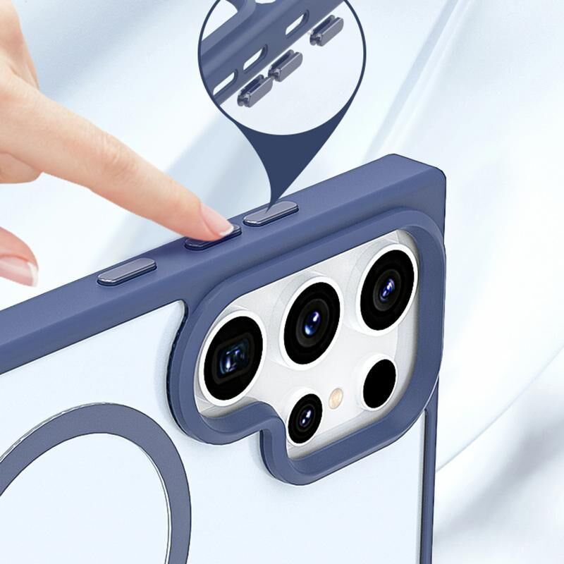 For Samsung Galaxy S23 Ultra 5G Metal Button Skin Feel Matte MagSafe Shockproof Phone Case(Purple)