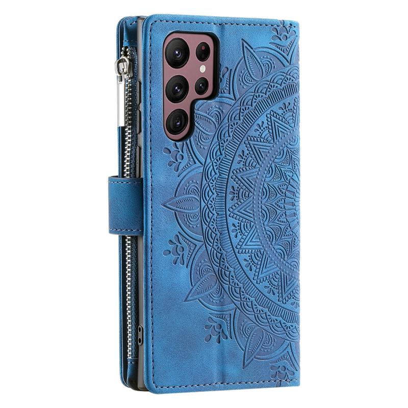 For Samsung Galaxy S23 Ultra 5G Multi-Card Totem Zipper Leather Phone Case(Blue)