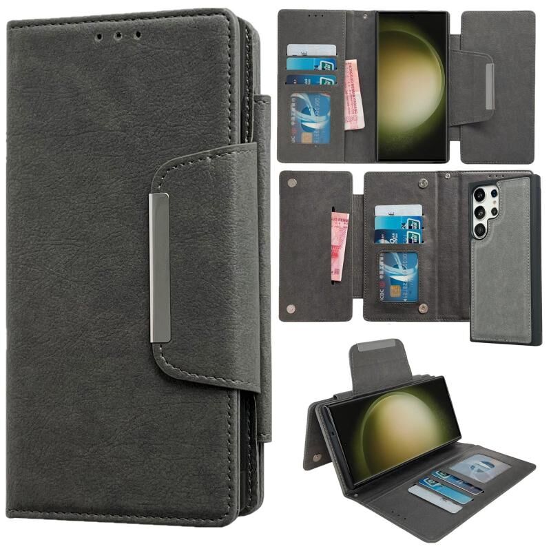 Για Samsung Galaxy S23 Ultra 5G Πολυλειτουργική 7-κάρτα πορτοφόλι δερμάτινη θήκη τηλεφώνου (γκρι)