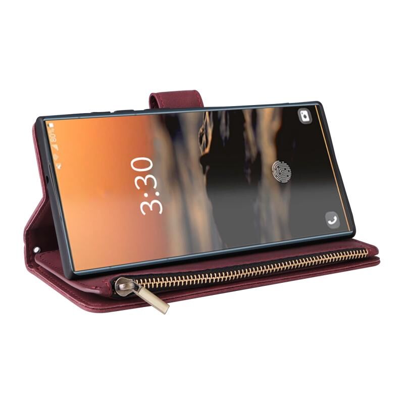 For Samsung Galaxy S23 Ultra 5G Multifunctional Frosted Zipper Wallet Leather Phone Case(Wine Red)