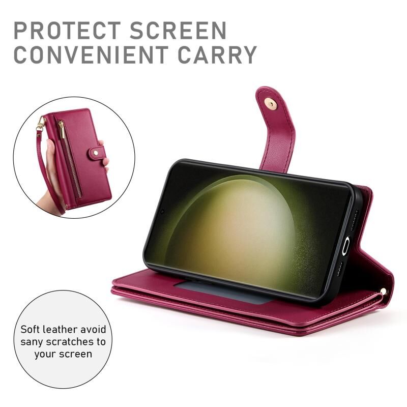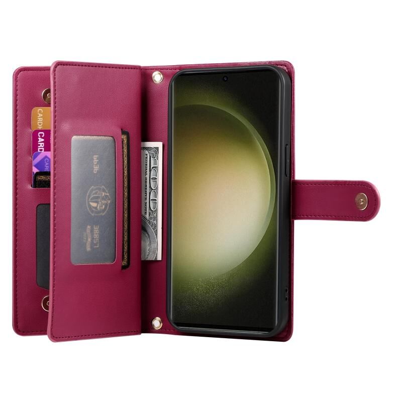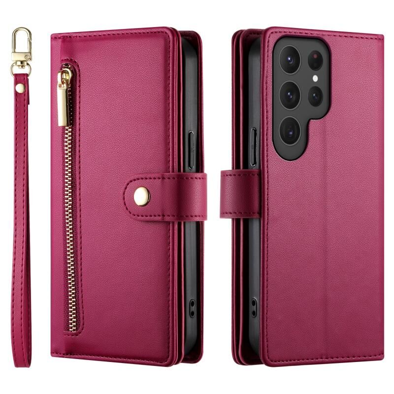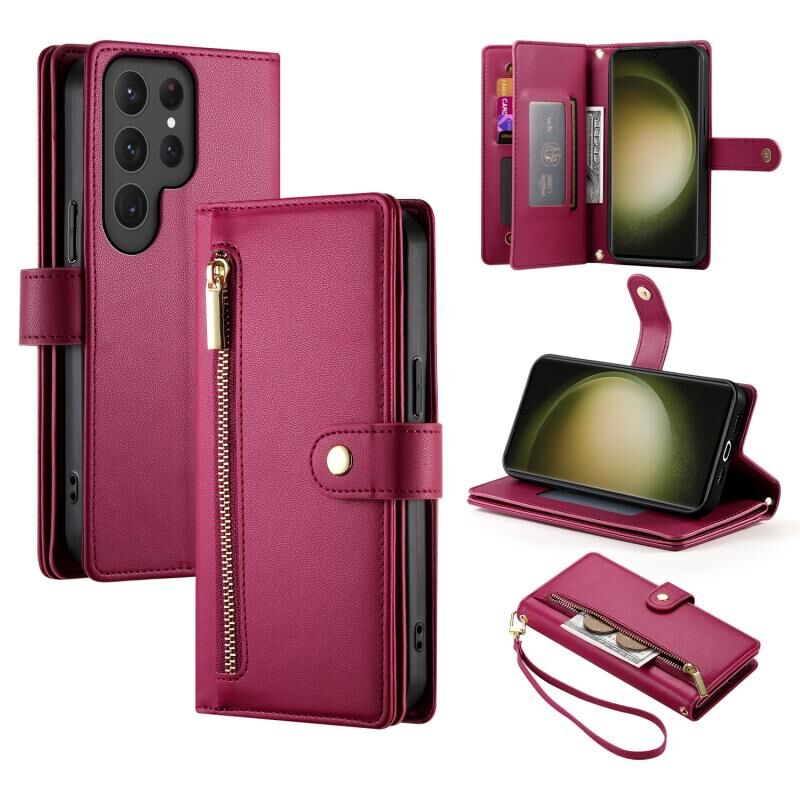 For Samsung Galaxy S23 Ultra 5G Nine Card-slot Zipper Wallet Bag Leather Phone Case(Red)