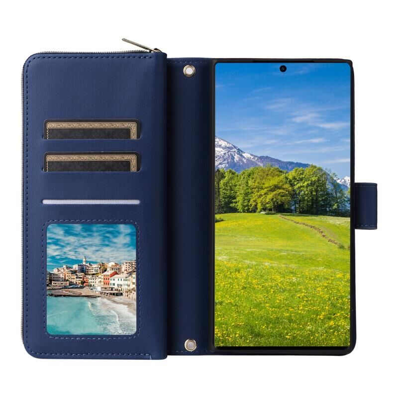 Για Samsung Galaxy S23 Ultra 5G εννέα-κάρτα Slots φερμουάρ πορτοφόλι τσάντα δερμάτινη θήκη τηλεφώνου (μπλε)