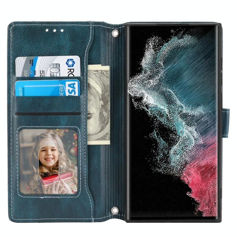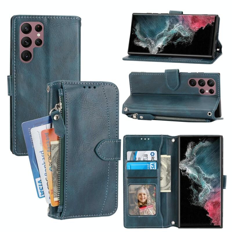 Για Samsung Galaxy S23 Ultra 5G Oil Skin φερμουάρ πορτοφόλι δερμάτινη θήκη τηλεφώνου (μπλε)